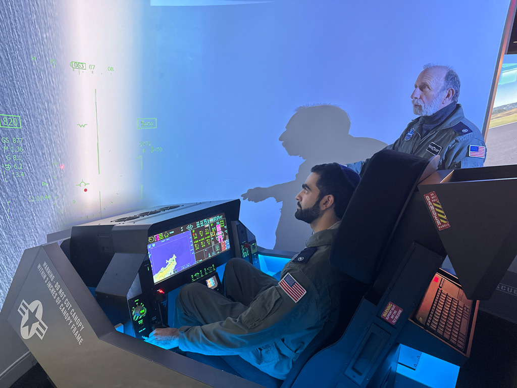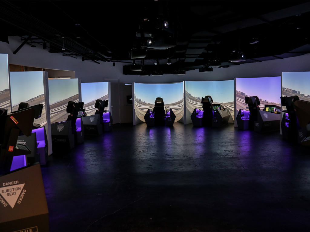 We swapped business casual for flight suits and headed to a briefing room for a crash course on flying F1 fighter jets. Then we entered a circular bay of high-fidelity, highly accurate flight simulators.